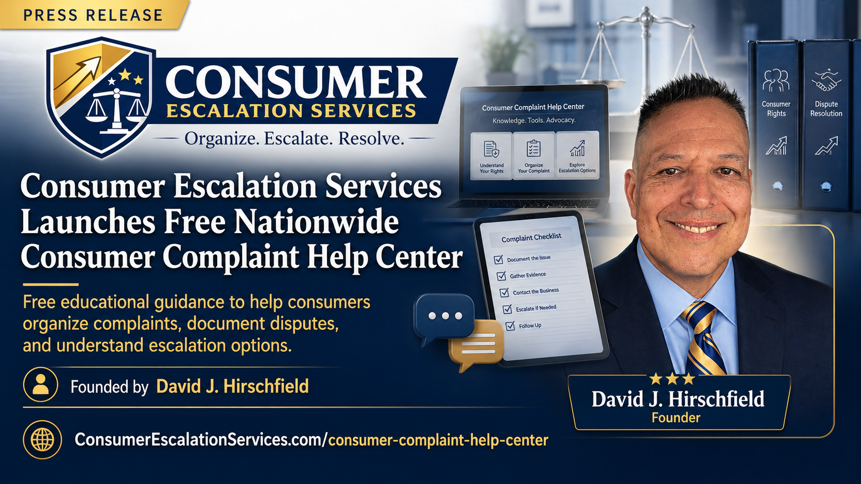 “Too many consumers are frustrated because they know something went wrong, but they do not know how to organize the facts, document the issue, or present the complaint in a way that gets taken seriously,” said David J. Hirschfield, Founder of Consumer Escalation Services. “We created the Consumer Complaint Help Center as a free public resource to help people understand the basic steps of organizing, documenting, and escalating unresolved complaints with structure.”